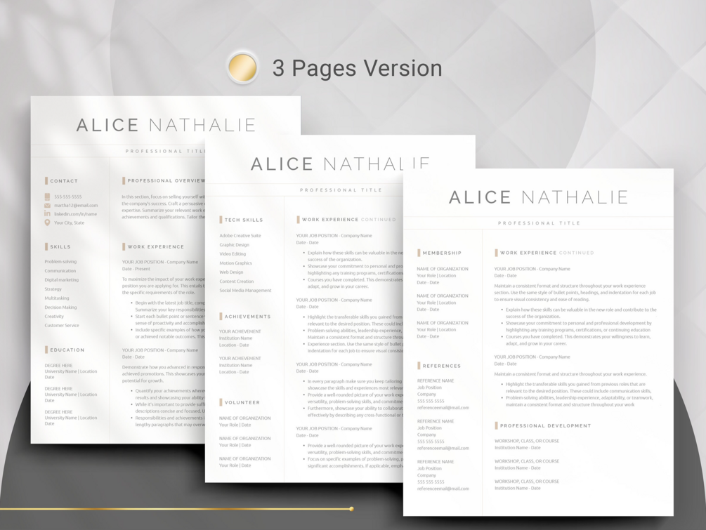 Crafted with expertise and attention to detail, this resume package empowers you to showcase your skills and achievements in a visually captivating manner. Bid farewell to generic resumes and embrace a unique format that leaves a lasting impact on employers.